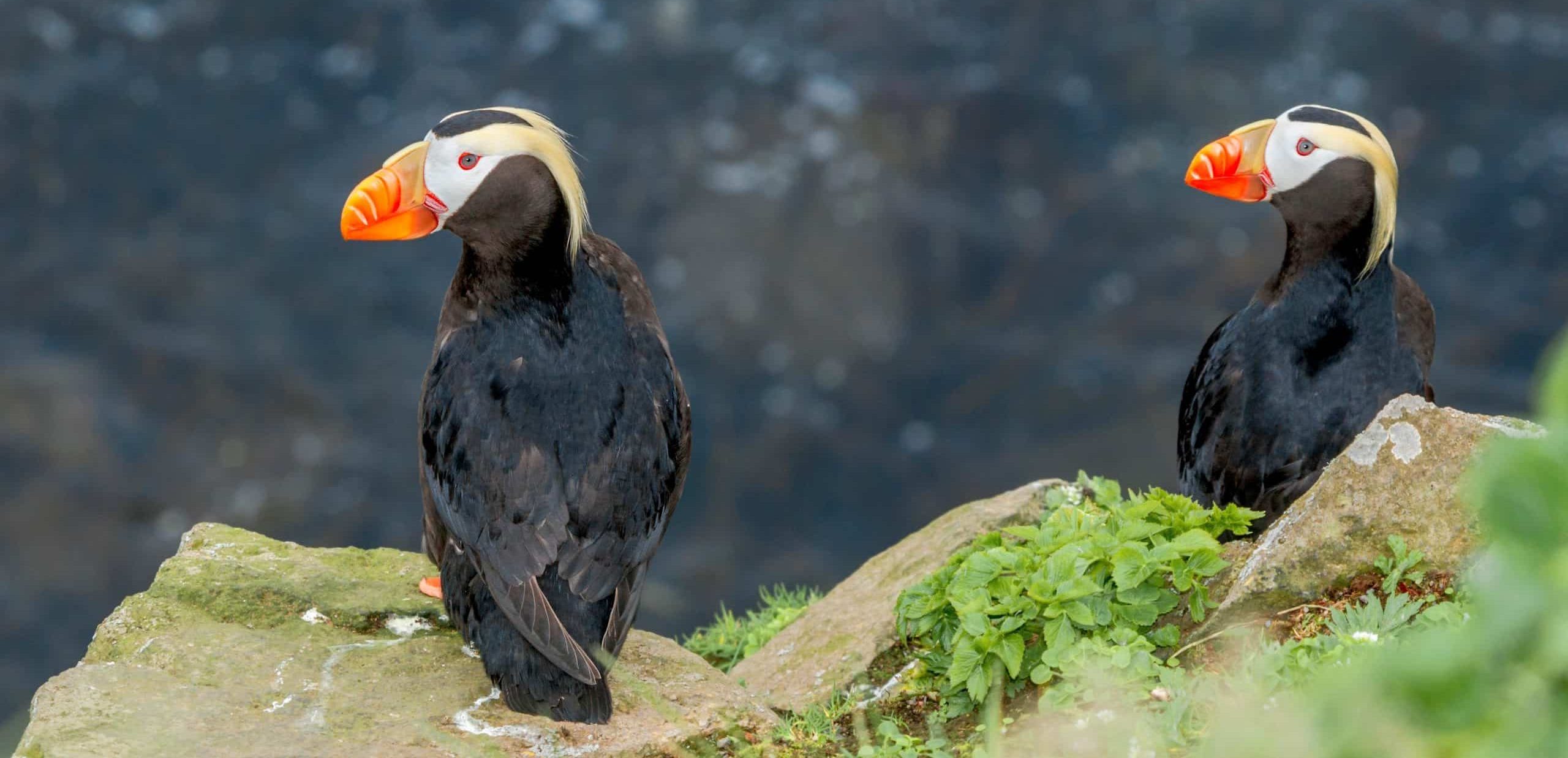 Plus tard, dans les zones plus ouvertes, la vie marine se manifeste partout. Les souffles des baleines percent la surface dans une brume blanche ; les loutres de mer flottent sur le dos, serrant leurs petits contre elles ; des otaries de Steller se réchauffent sur des rochers polis par les vagues ; les macareux, maladroits mais vifs, plongent en quête de poissons. Lorsque les conditions le permettent, on débarque pour une courte randonnée jusqu’à un ruisseau où fraient les saumons, ou jusqu’à un promontoire qui offre une vue spectaculaire sur les fjords encaissés.