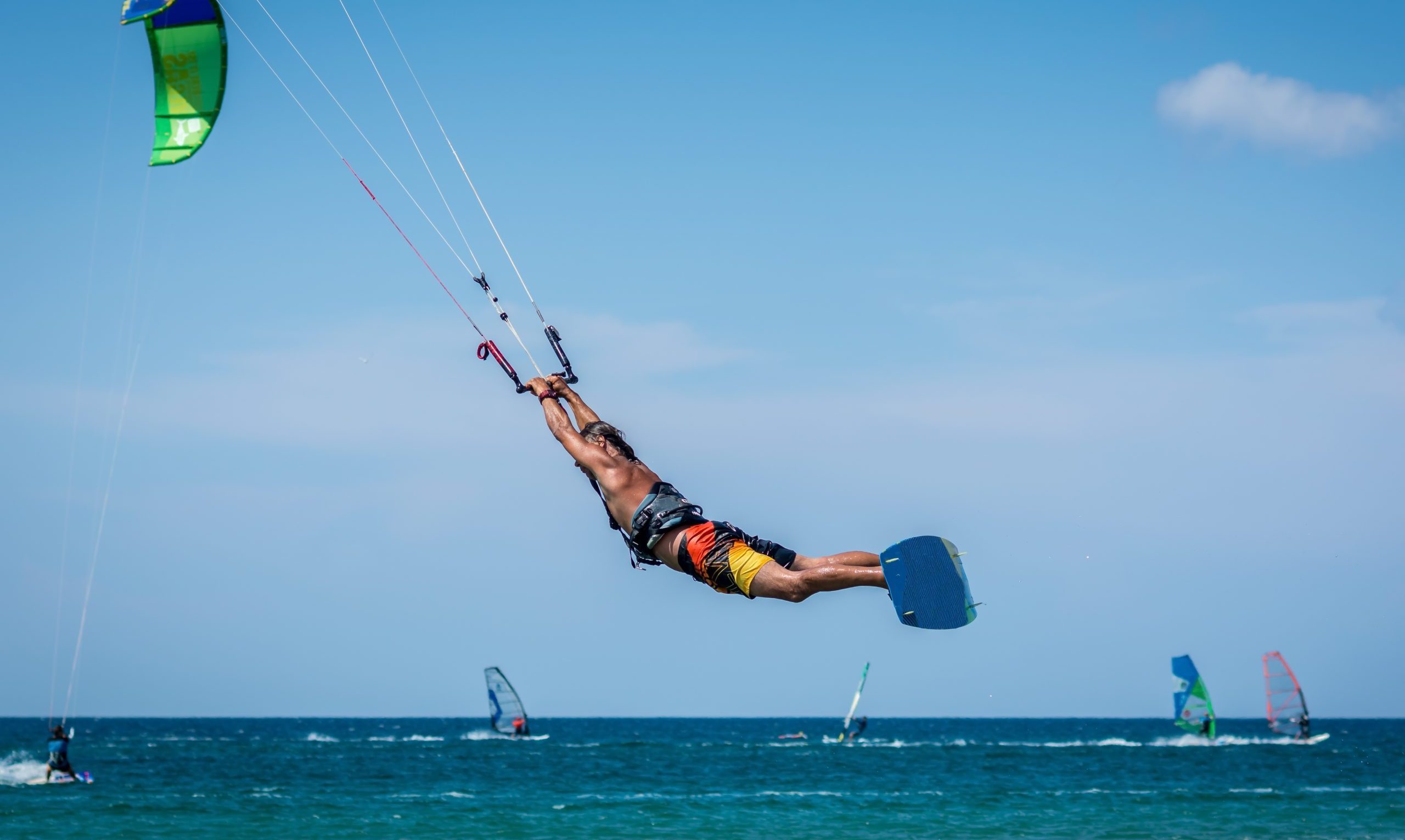 Dans l’un des spots de kitesurf les plus réputés au monde, au milieu du Sahara occidental, on se laisse glisser sur la vague en compagnie d’un champion de kitesurf marocain.