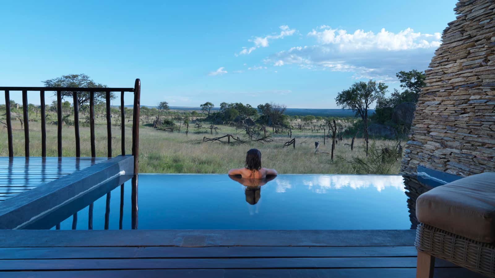 C’est au cœur de ce sanctuaire que le Four Seasons Safari Lodge Serengeti a ouvert ses portes en 2013, marquant un tournant dans l’hôtellerie haut de gamme en Tanzanie. Posé sur des plateformes de bois au coeur de ces plaines sauvages, l’hôtel conjugue raffinement contemporain et immersion nature sans précédent. Son atout le plus spectaculaire : une piscine à débordement surplombant un bassin naturel où les éléphants viennent s’abreuver, offrant aux voyageurs la magie d’une baignade au premier rang du grand spectacle animalier.