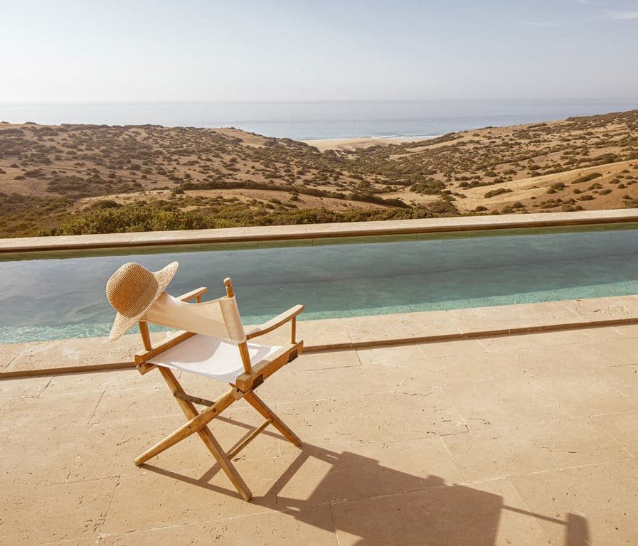 Les chambres, réparties sur le domaine, sont décorées dans un style marocain moderne avec des touches italiennes et art déco. Dans chaque pièce, se mêlent œuvres contemporaines, tapis berbères, poteries faites main et luminaires en cuivre martelé, soigneusement sélectionnés par les architectes d’intérieur français Charles-Philippe et Christophe, du studio Laboratoire Design de Rabat.